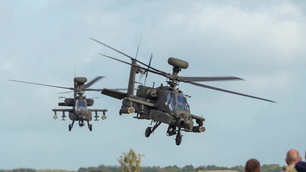 Two Apaches Hovering at Eye Level Speaks for Itself